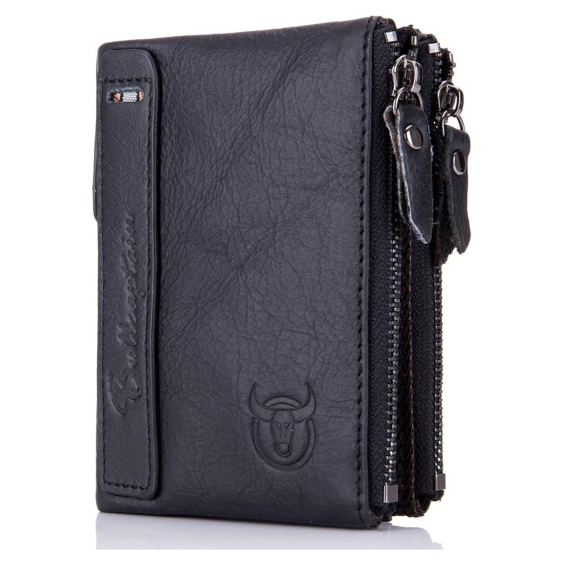 Men's Genuine Leather Wallet Vintage Bifold with Double Zipper Pockets