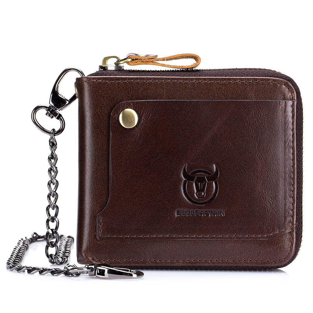 Men’s Genuine Leather Trifold Wallet with a Anti-theft Fixed Chain
